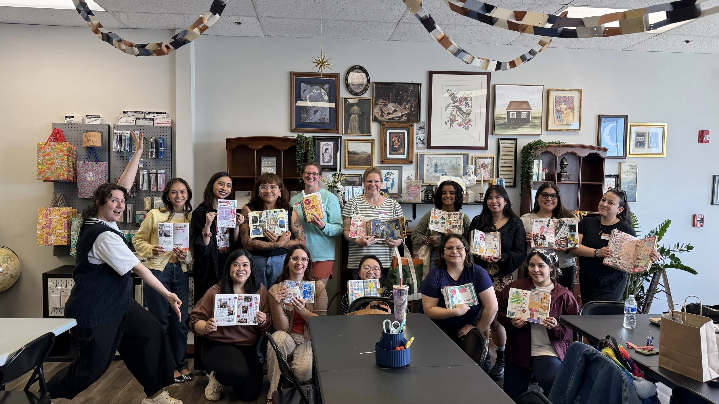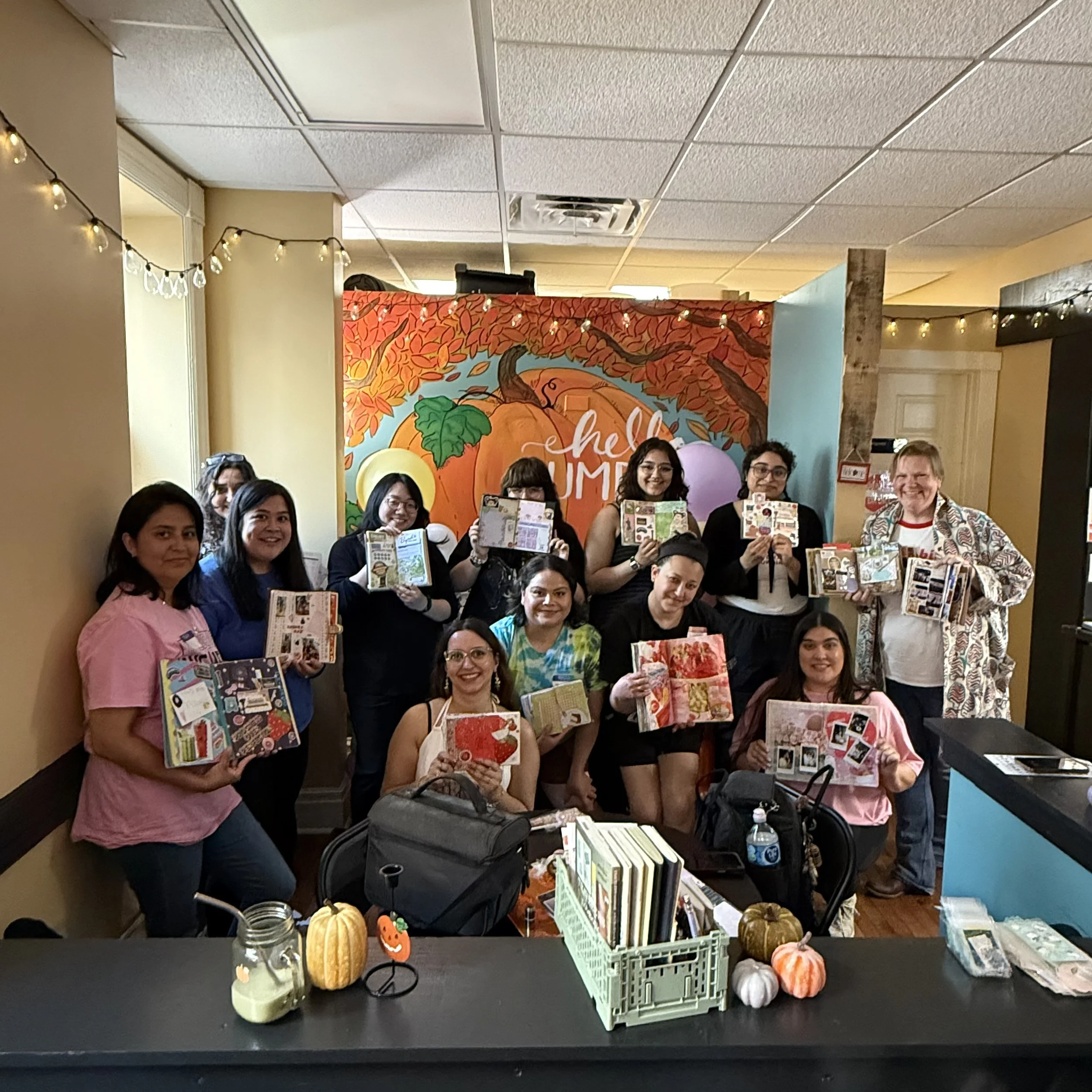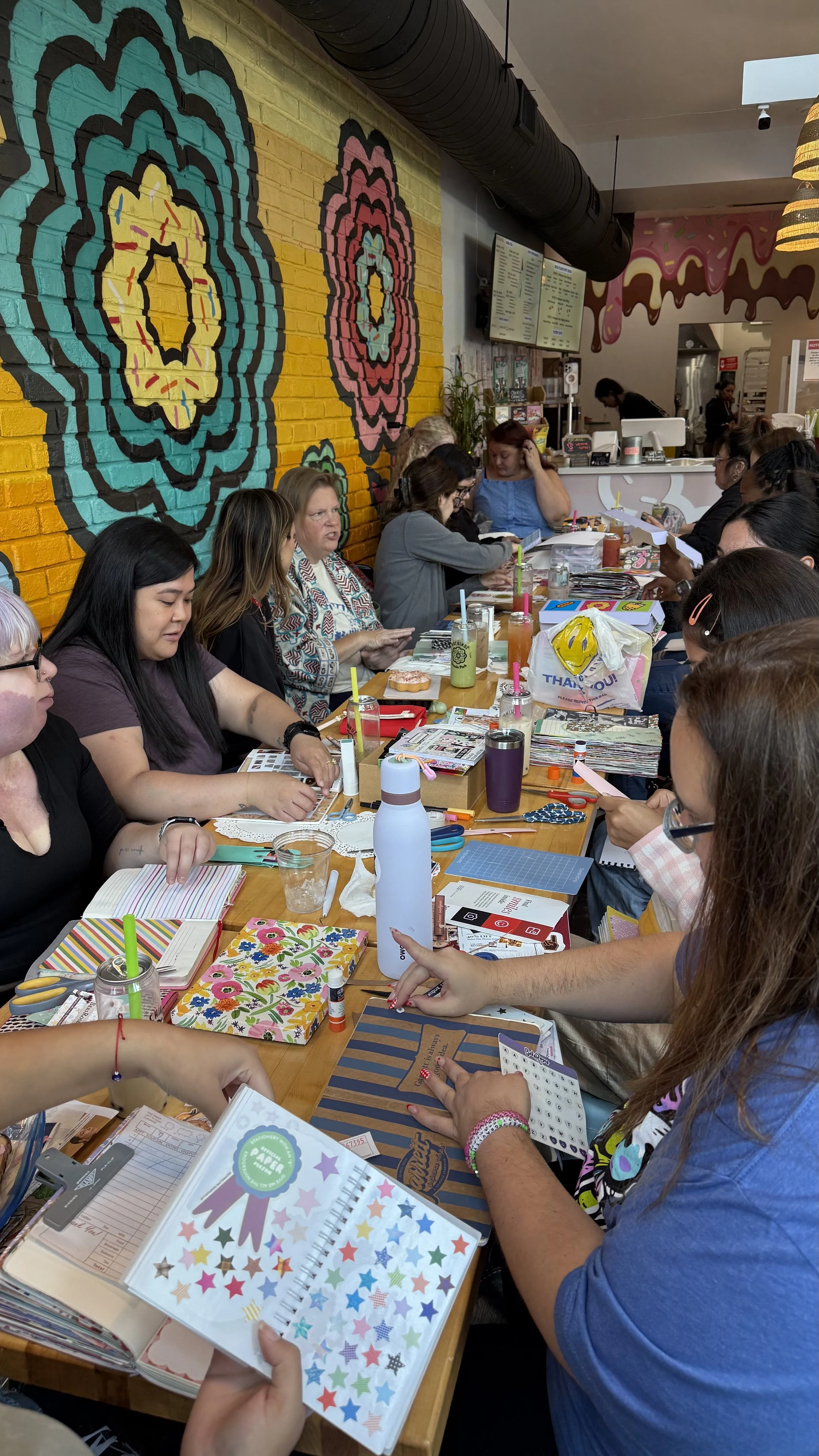 At CJJC, we gather for monthly meetups where members bring their journals, swap supplies, and create together. There are also themed workshops that give direction to your pages while sparking new inspiration.