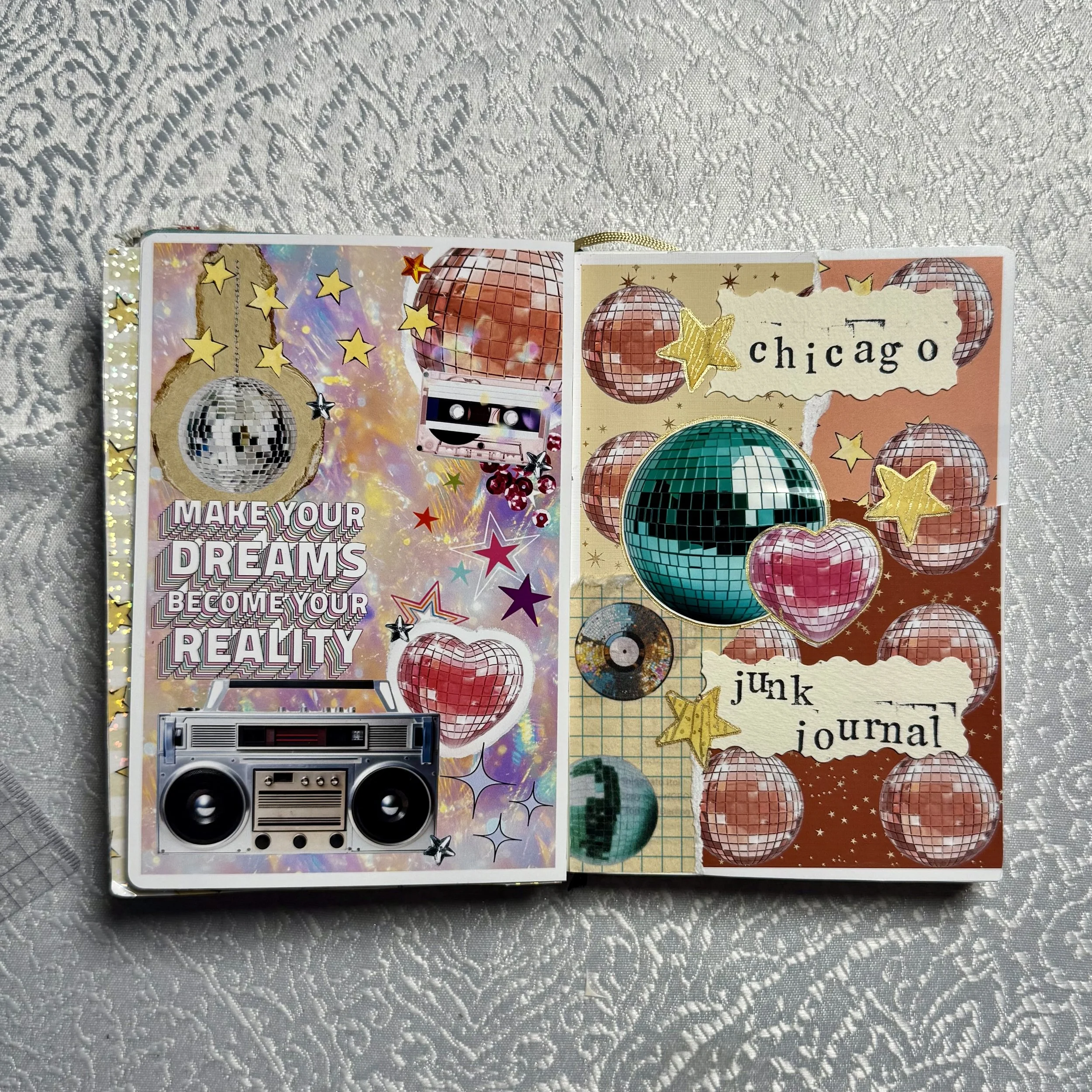 Welcome friends! My name is Beks, and I am the founder of Chicago Junk Journal Club. CJJC is a creative community built around the joy of journaling, memory keeping, and storytelling with our hands. What started as a small meet-up has grown into one of Chicago’s most vibrant creative clubs, bringing together people who love paper, stickers, scraps, photos, paints, washi tape, and all the little things that turn a blank page into a story.